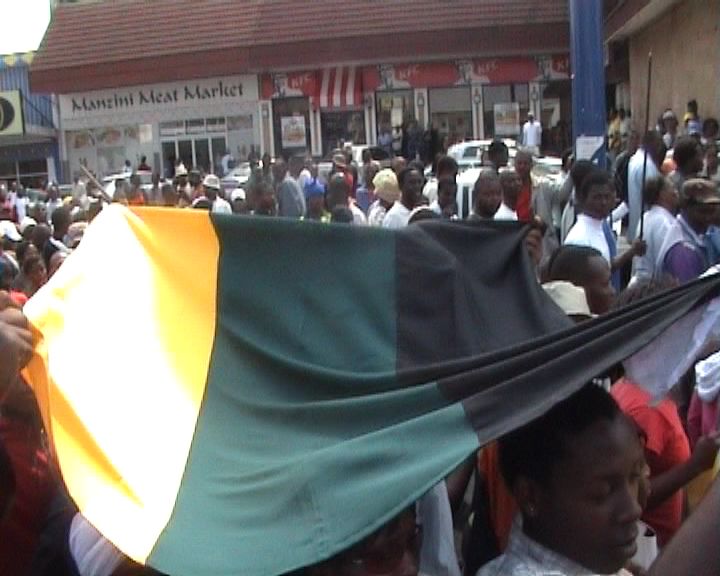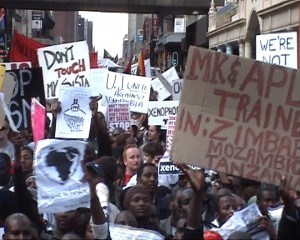 Protest in SA – Still taken from “The South African solidarity movement with Zimbabwe – Part II”