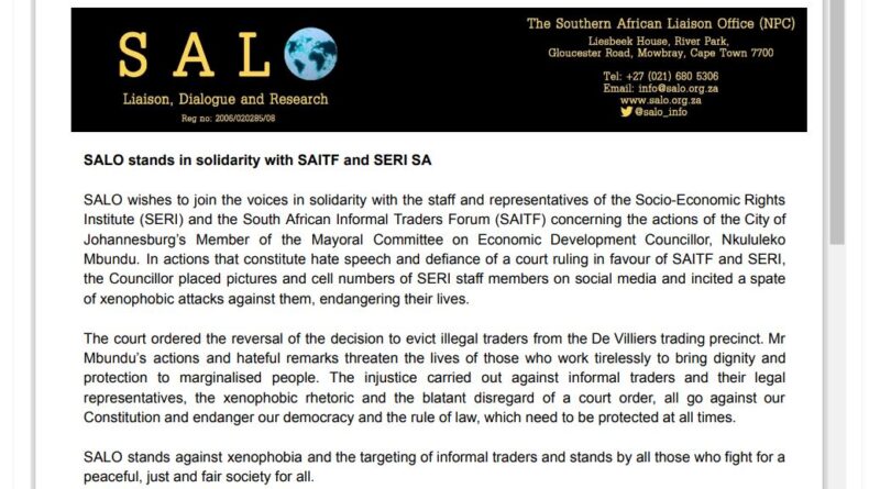 All Posts SALO Highlights SALO stands in solidarity with SAITF and SERI SA August 8, 2022August 8, 2022 SALO SALO-Statement-in-solidarity-with-SERIDownload