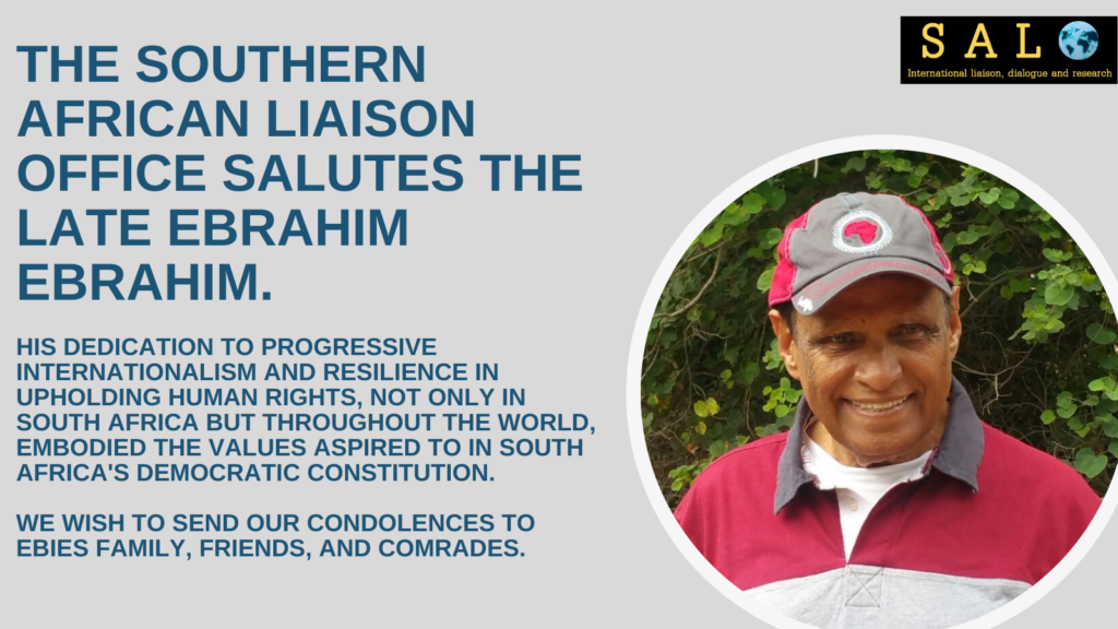 All Posts SALO Highlights The Southern African Liaison Office salutes the late Ebrahim Ebrahim. December 6, 2021December 6, 2021 SALO